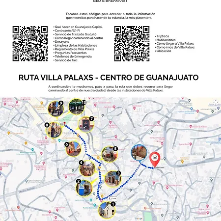 Dotato di un ristorante, il Bed and Breakfast Casa Palaxs Guanajuato, a 3 stelle, si trova a circa 25 minuti a piedi dal Museo ex hacienda San Gabriel de Barrera. La struttura offre un parcheggio auto privato nella struttura.